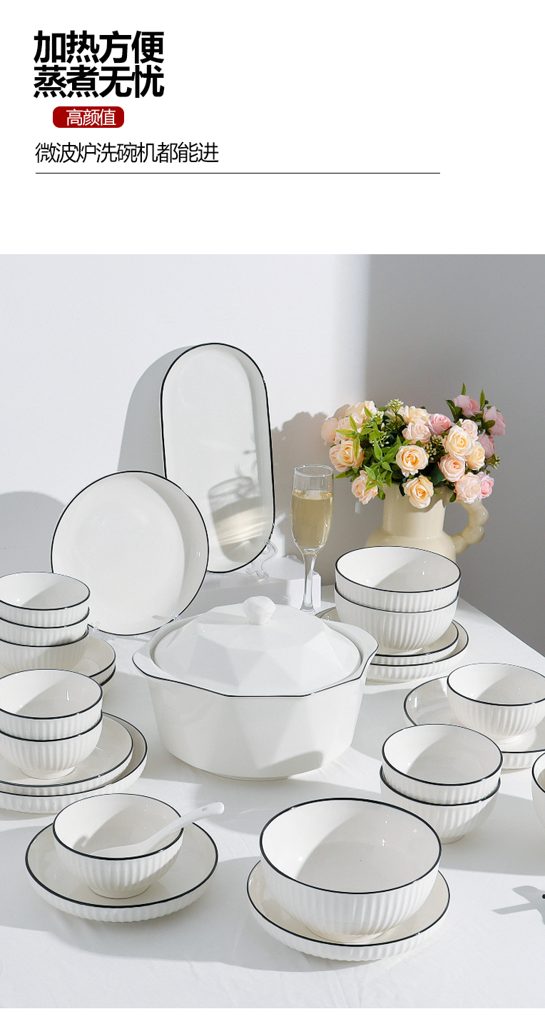 | 商品名称 | 高颜值碗碟套装家用盘子简约碗盘筷组合乔迁2025新款陶瓷餐具套装 |